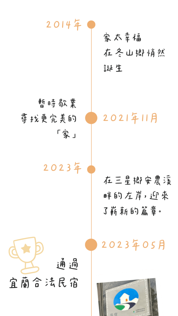 為實現這個初衷,第一間「家太幸福」於2014年在冬山鄉悄然誕生。
